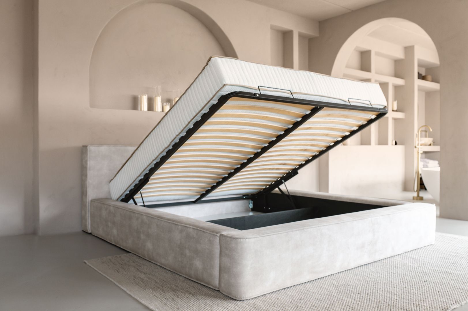 Met zijn eigentijdse design en hoogwaardige materialen is het Adore Element bed een ware blikvanger in elke slaapkamer. Maar dat is nog niet alles! De lage instap van dit bed zorgt voor ultiem gemak bij het in- en uitstappen, waardoor het niet alleen een lust voor het oog is, maar ook nog eens praktisch in gebruik. Weet jij af en toe niet waar jij je spullen moet laten? Geen probleem, Adore Element beschikt over een opbergruimte die gemakkelijk te openen is.